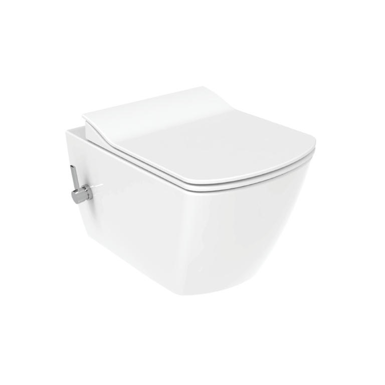 CREAVIT ELEGANT WALL-HUNG TOILET WITH BIDET – RIMLESS – WITH COLD AND WARM WATER BIDET TAP – WITHOUT TOILET SEAT – GLOSSY WHITE