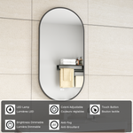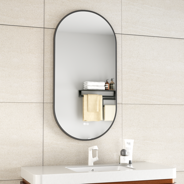 ERFU Miroir de Salle de Bain Ovale 50x100 cm en Couleur Noir Mat: Luxe, Chauffage et Éclairage LED Dimmable