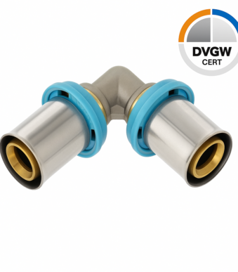RACCORD MULTICOUCHE ERFU COUDE À SERTIR 90° COUDE ÉGAL 20 MM X 20 MM – CERTIFIÉ DVGW, MULTI-PROFIL U/H/TH