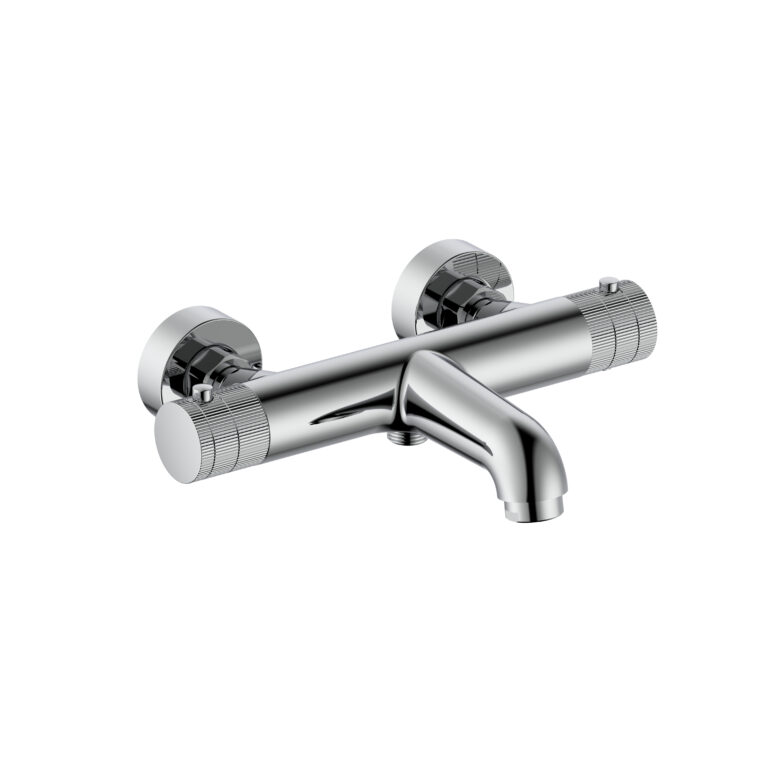 Stria Bath Mixer – Thermostatic – Wall-Mount – Refined Ribbed Handles – Chrome