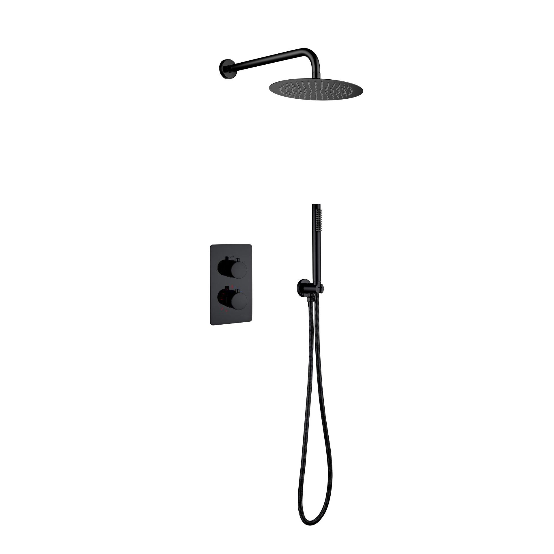 Aloni Ensemble De Douche Thermostatique Encastré Avec Pomme De Douche Pluie (Ø25cm) – Noir Mat