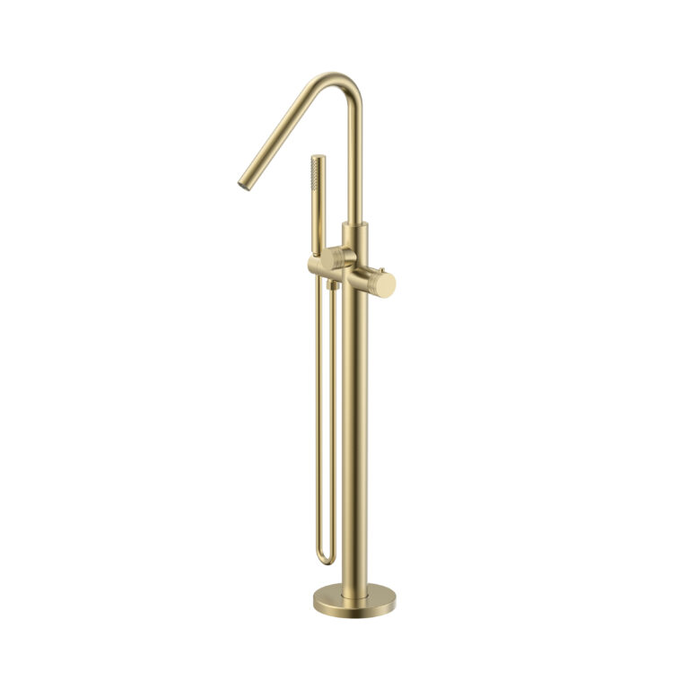 Stria Mitigeur De Bain – Indépendant – Thermostatique – Avec Douchette Et Flexible – Boutons Avec Structure Striée – Or Brossé (Pvd)