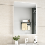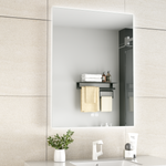 Un bouton tactile élégant est intégré dans le verre du miroir pour contrôler facilement l'éclairage et le chauffage. Le diffuseur dans l'éclairage LED garantit une lumière uniforme et douce, sans points LED visibles, pour un effet moderne et raffiné.