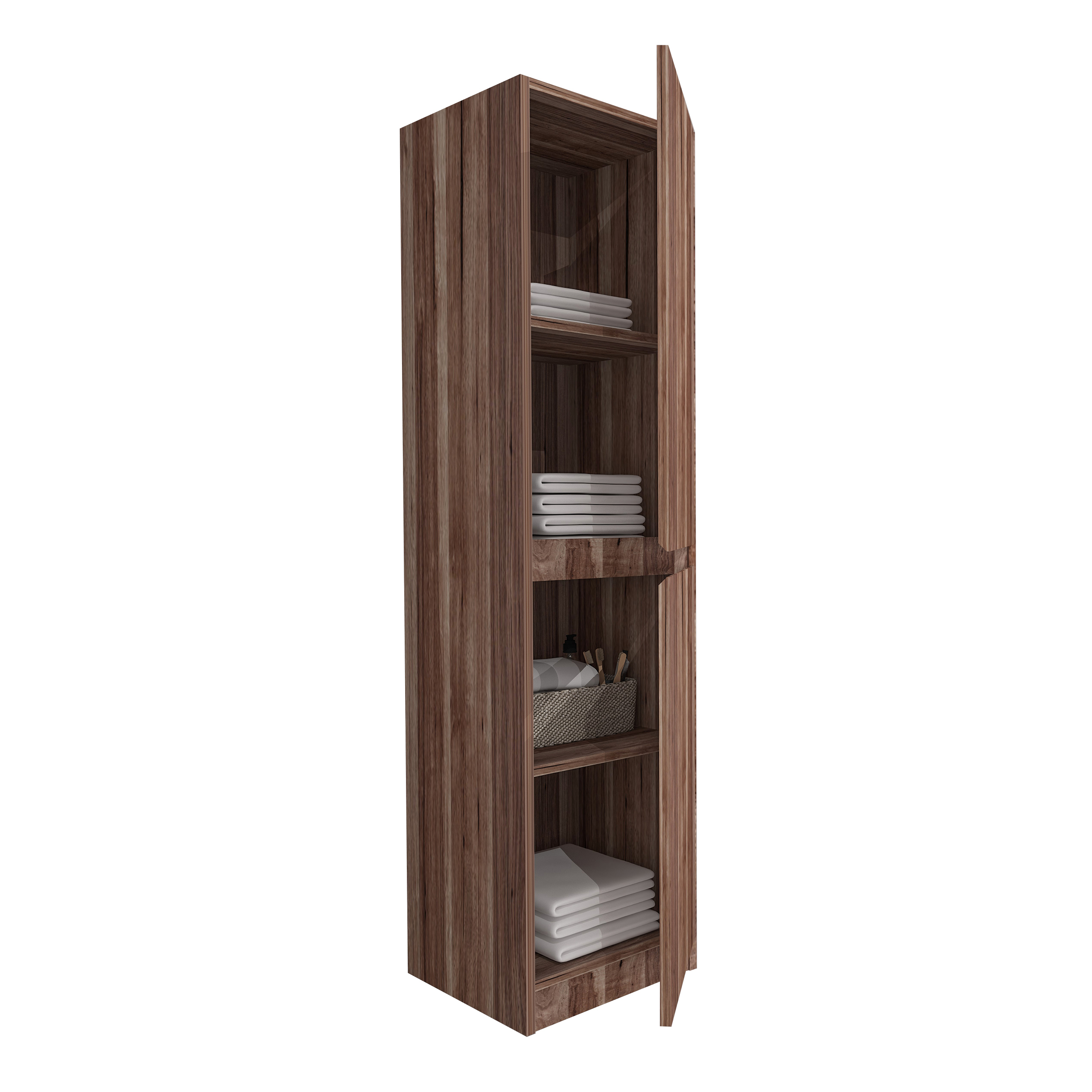 Armoire Colonne Aloni Ela – 2 Portes – Sans Poignée – Fermeture Douce – Réversible – 35x135x35 Cm – Wengé