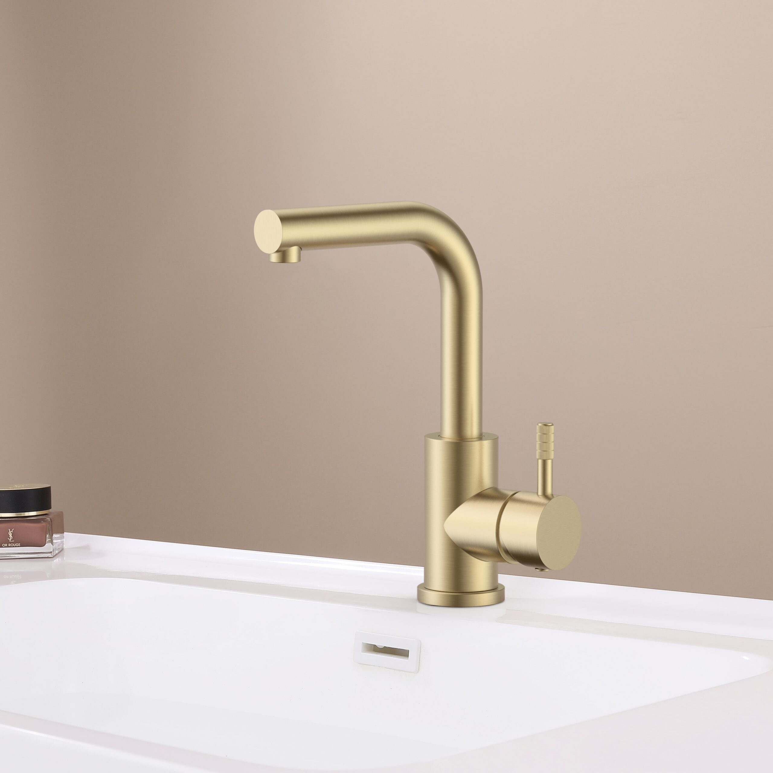 Mitigeur De Lavabo/Cuisine Stria – Bec Droit – Pivotant – Démarrage À Froid – Poignée À Texture Nettoyée Raffinée – Sans Vidage – Or Brossé (Pvd)