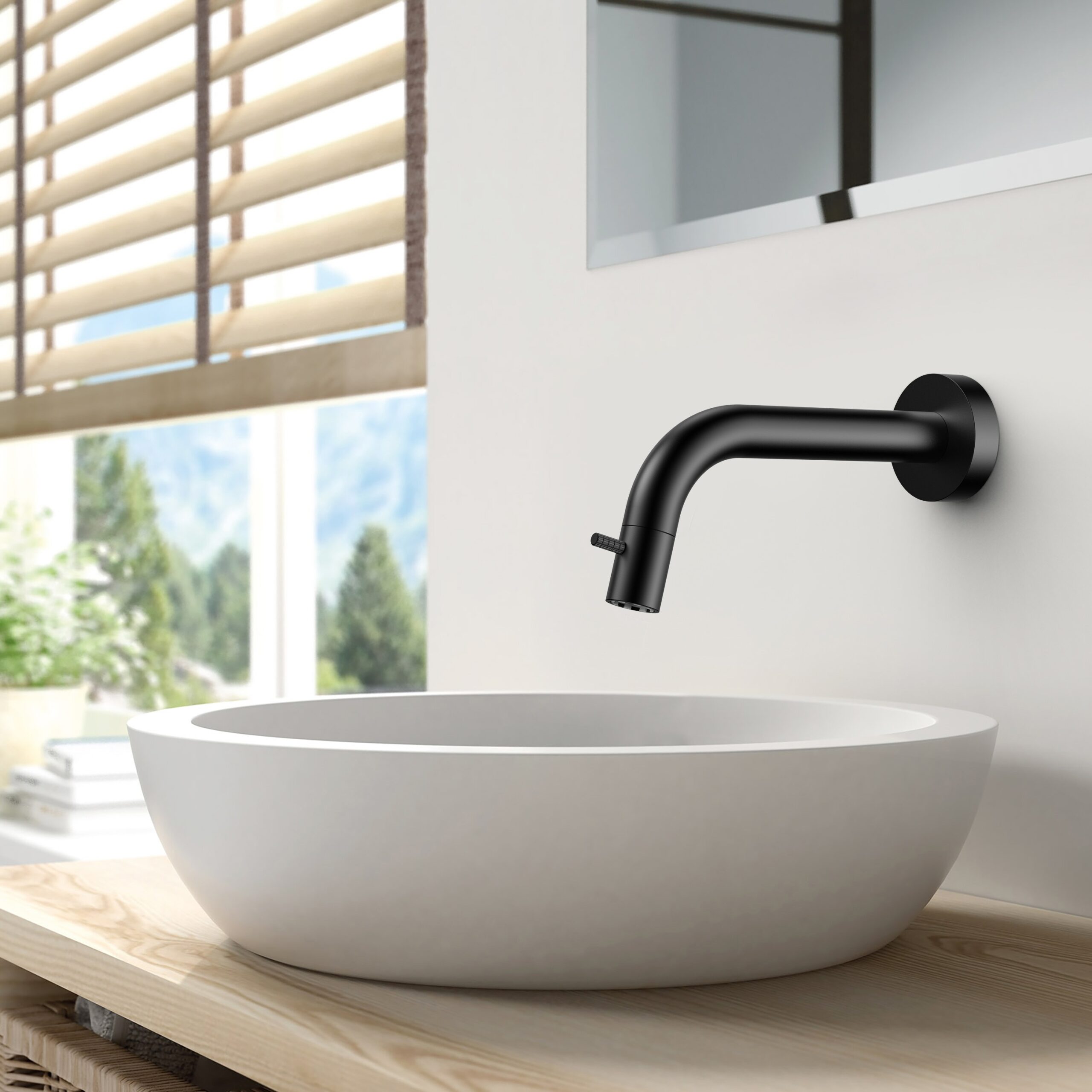 Robinet Eau Froide Stria – Montage Mural – Réglable – Bouton À Texture Nettoyée Raffinée – Sans Vidage – Noir Mat (Pvd)