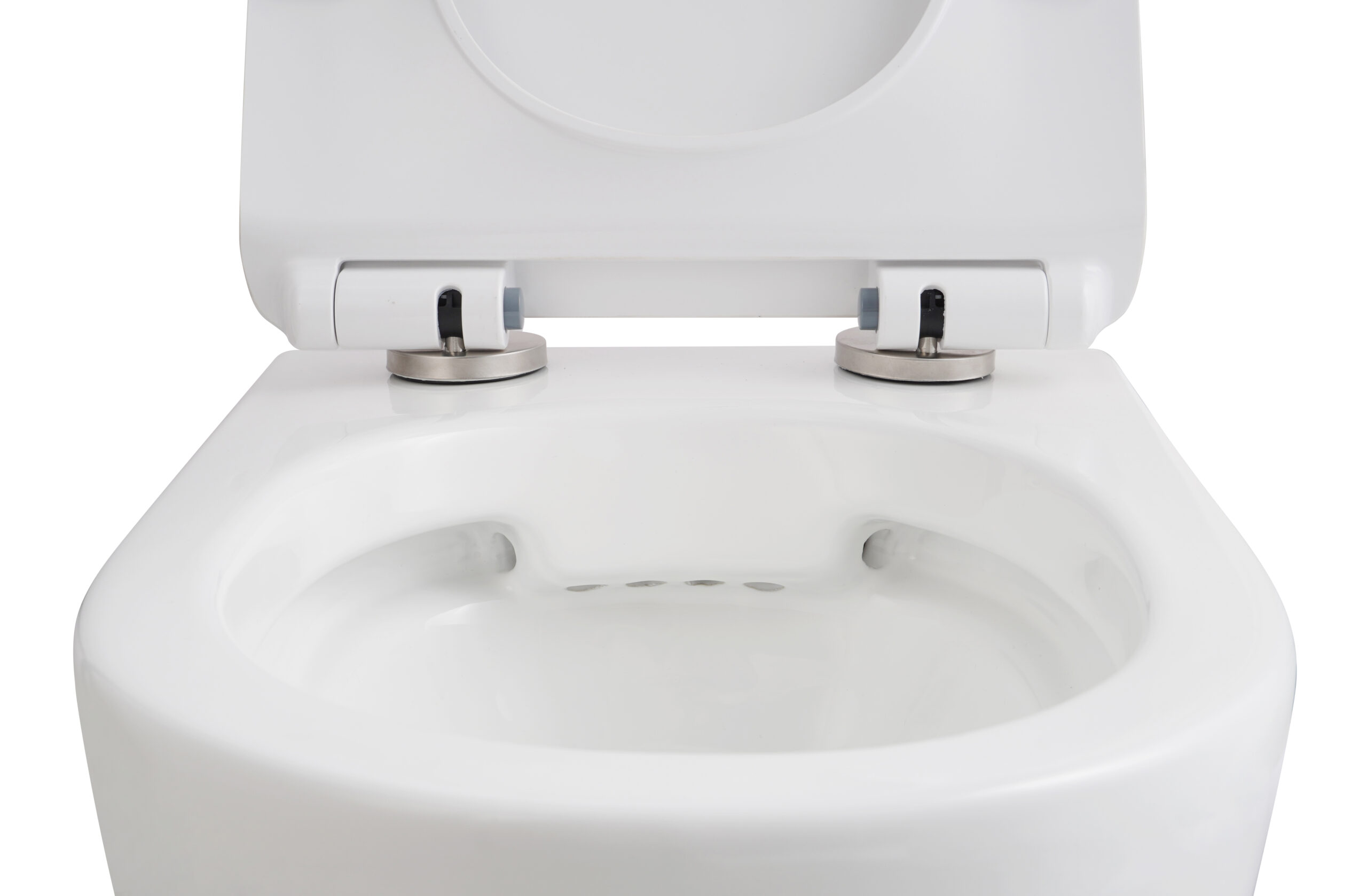 Combine style and functionality in your bathroom with the ALONI ECO D-shaped wall-hung toilet. The clever D-shaped, rimless design provides a modern look and optimal hygiene, as dirt and bacteria have little chance to accumulate. With a compact length of 49 cm, this toilet is perfect for both small toilets and larger bathrooms, without compromising on comfort or ease of use.