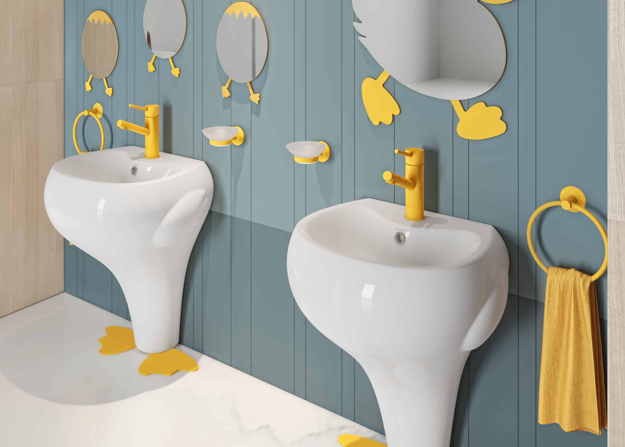 It has always been difficult to find a bathroom that is adapted to the needs and wishes of children. The award-winning Ducky bathroom set from Creavit creates a colorful world full of bathroom fun thanks to its charming shapes. These accessories like the Anneau porte-serviettes are the perfect complement.