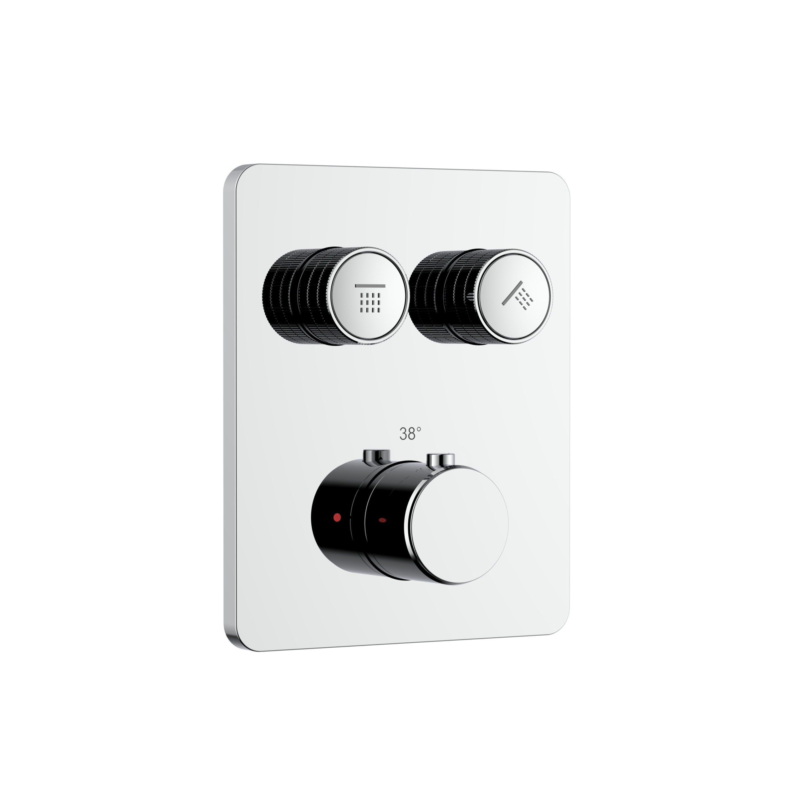 Stria Shower Mixer – 2-Way – Thermostatic – Refined Ribbed Push Buttons – With Built-In Box And Trim Set – Rectangular – Chrome