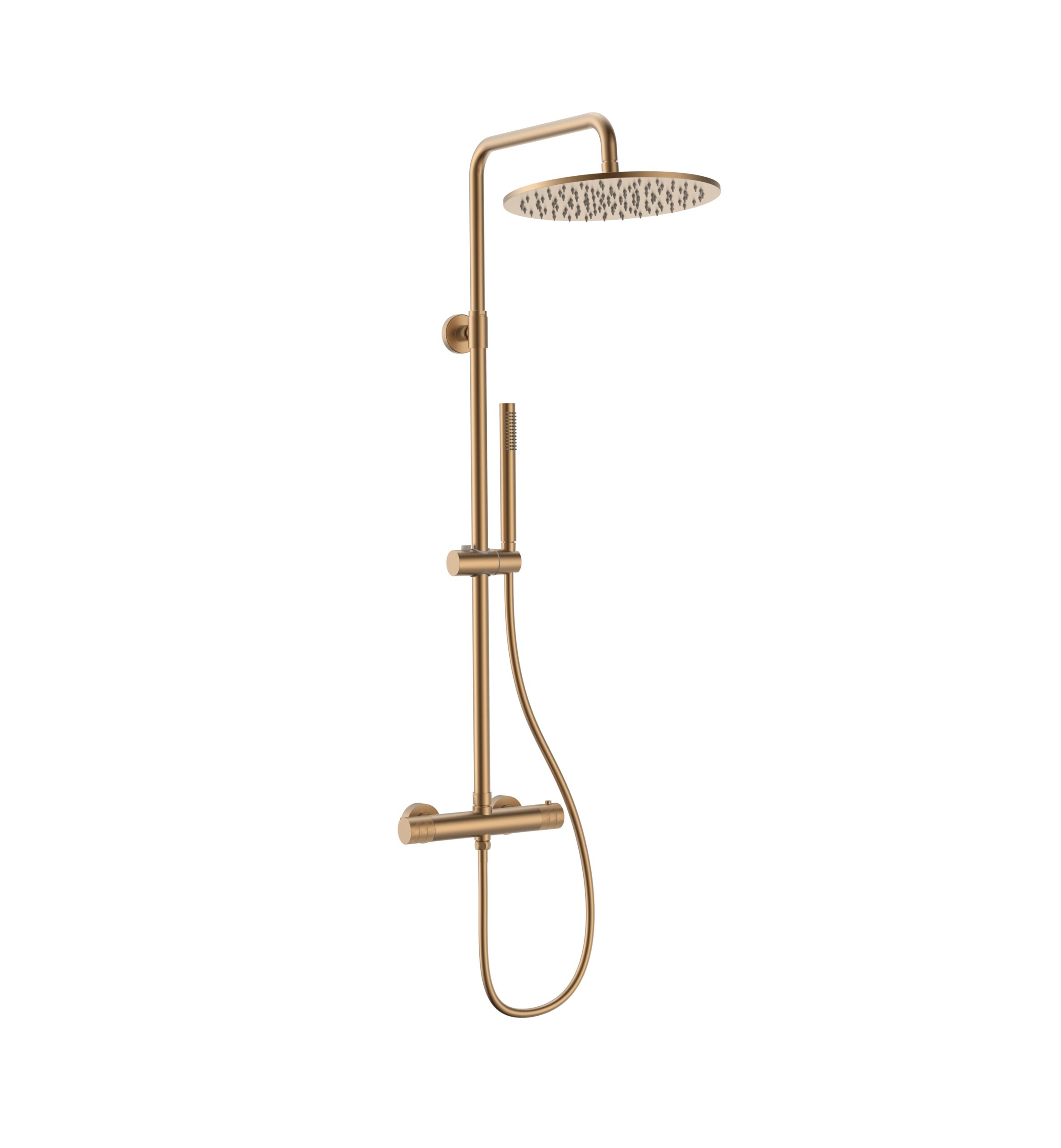 Stria Ensemble De Douche Pluie – Thermostatique – Cool Touch – Douche De Tête 30 Cm – Montage Apparente – Boutons S Avec Structure Striée Raffinée – Or Brossé (Pvd)