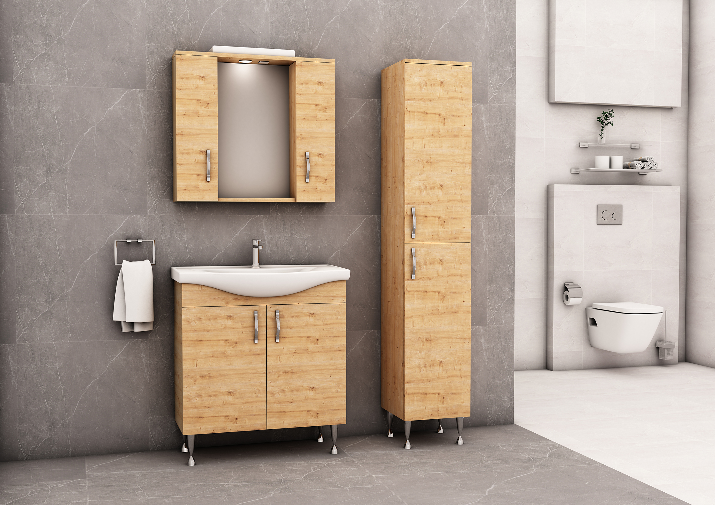 Mimoza Kolomkast – 2 Deuren – Greeploos – Soft Close – Omkeerbaar – 35x160x35 Cm – Licht Eiken