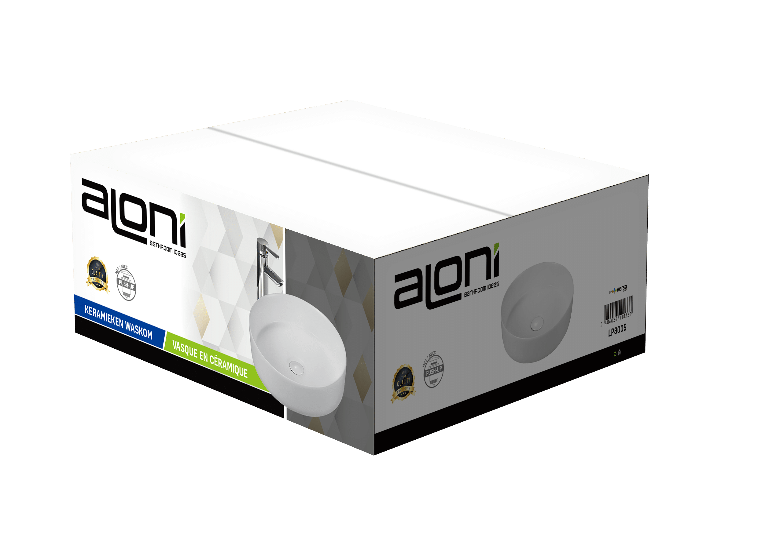 Het Aloni Fira washbasin is an elegant countertop model, made from high-quality ceramic with a matte white finish. Thanks to its minimalist design – without tap hole and without overflow – this basin offers maximum flexibility in tap selection and ensures a clean, seamless look. It comes with a practical click waste for easy use and maintenance.