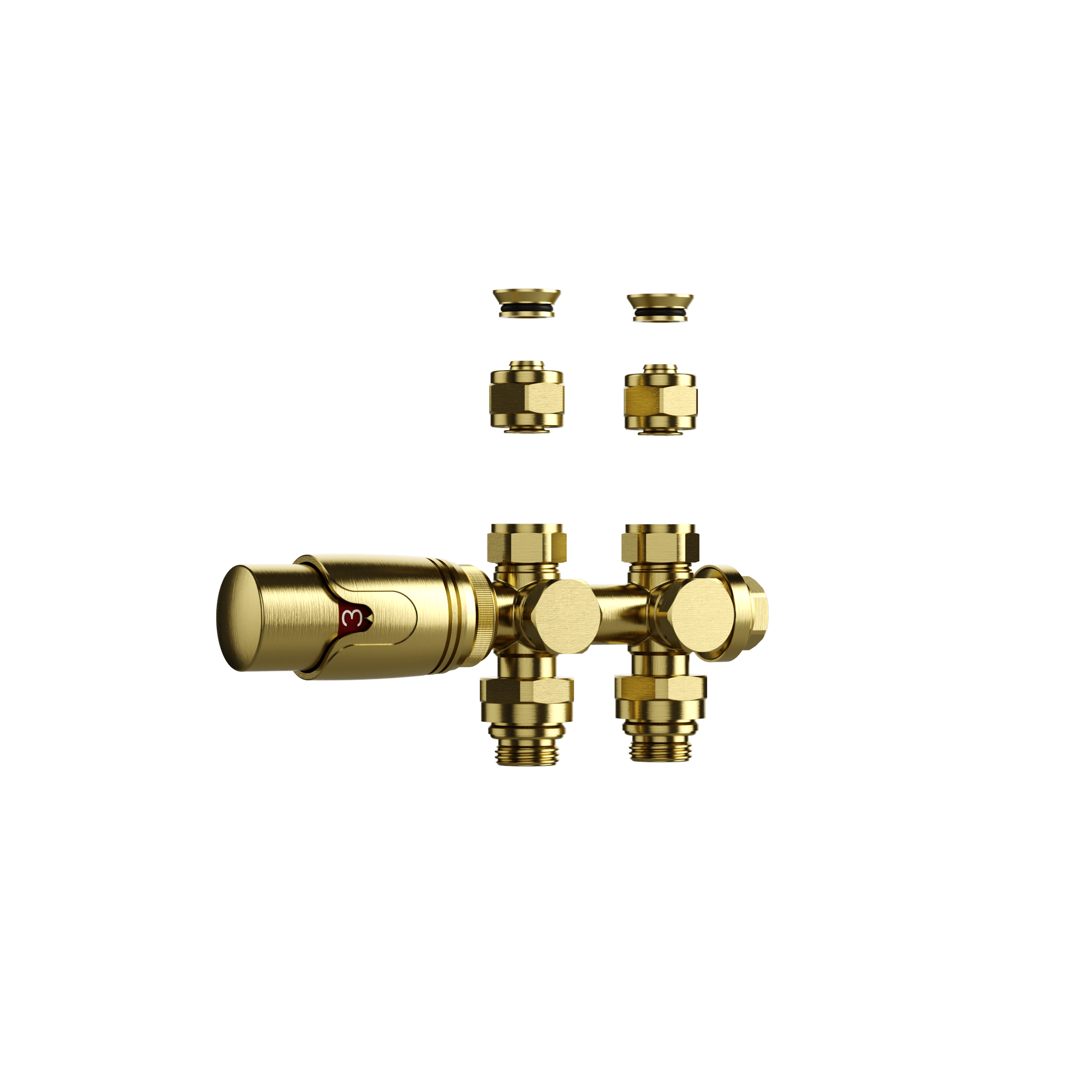 Radiatorklep – Design – Thermostatisch – Wand- En Vloeraansluiting – 1/2″ Buitendraadx16/2 M30 – Geborsteld Goud