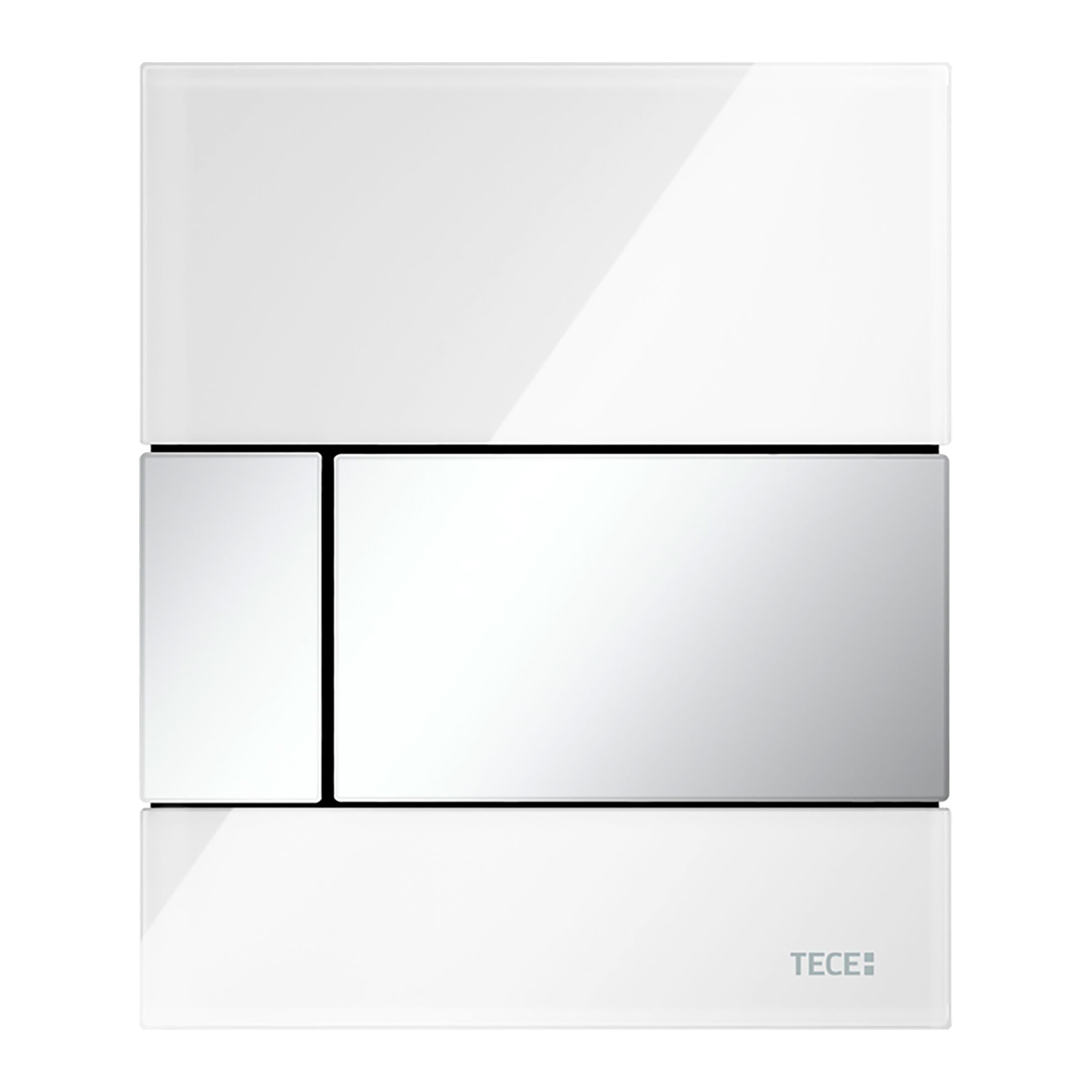 Tecesquare Urinoirbedieningsplaat Van Glas Incl. Cartouche – Glas Glanzend Wit – Toets Glanzend Chroom