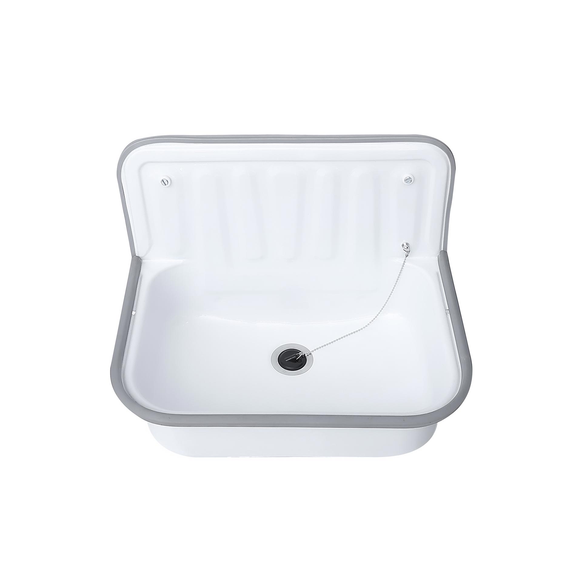 The bumper protects the edge from damage when emptying buckets, while the included waste plug and chain ensure ease of use. Thanks to its wear- and corrosion-resistant material, this sink is ideal for intensive daily use in workshops, sanitary spaces, kitchens, or storage rooms. Finally, the utility sink comes with mounting hardware included.