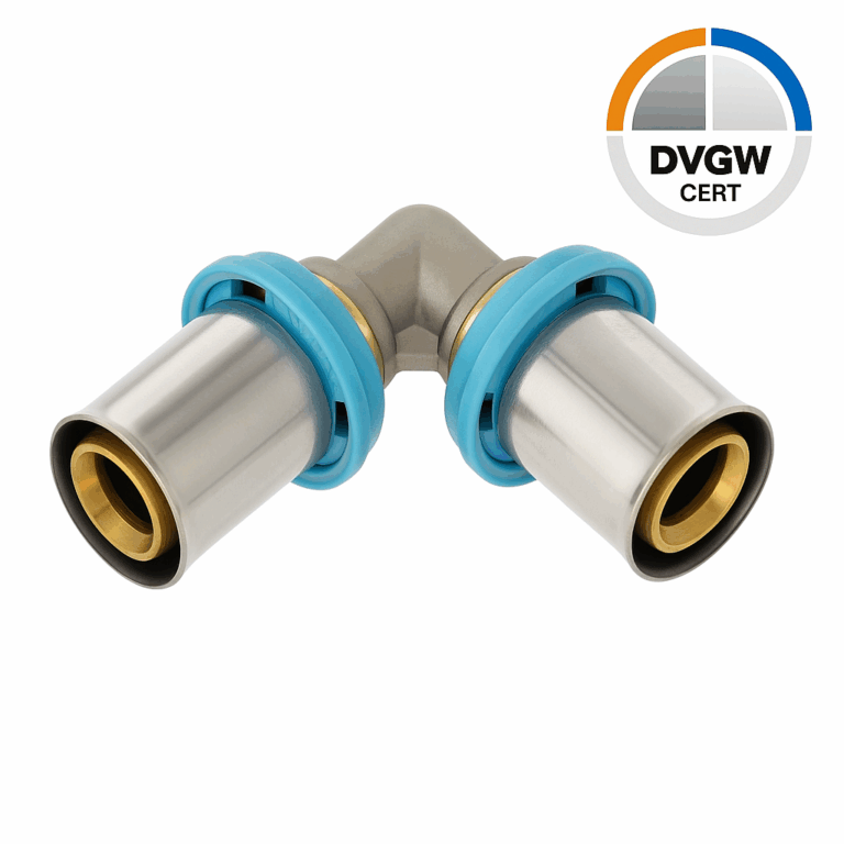 ERFU 90° CRIMP ELBOW MULTI-LAYER FITTING 20 MM X 20 MM EQUAL ELBOW – DVGW CERTIFIED, MULTI-PROFILE U/H/TH