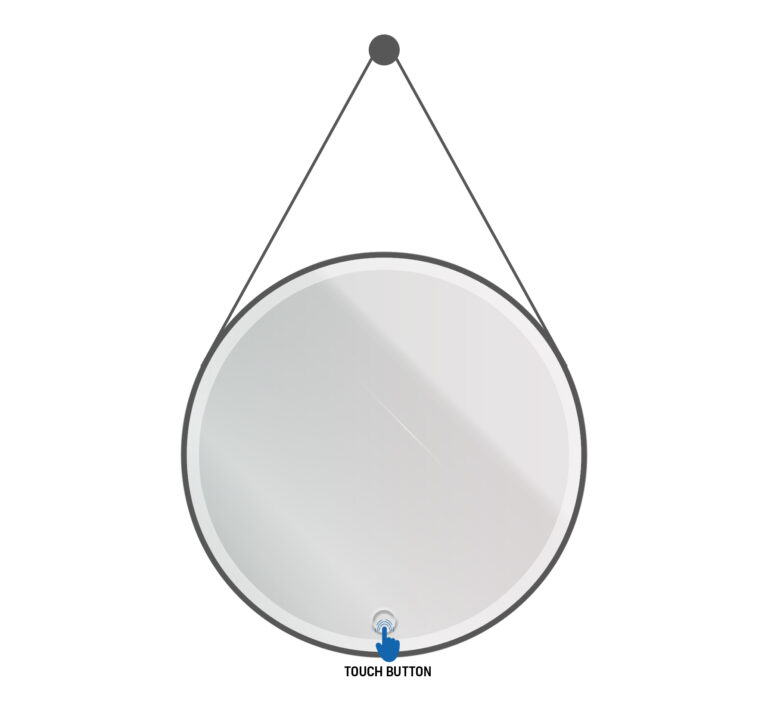 ALONI BELTIA MIROIR – AVEC ÉCLAIRAGE LED – ROND – AVEC CADRE – AVEC SANGLE EN CUIR SYNTHÉTIQUE ET CROCHET – TEMPÉRATURE DE COULEUR LED 3500-6500K – 80CM – NOIR MAT