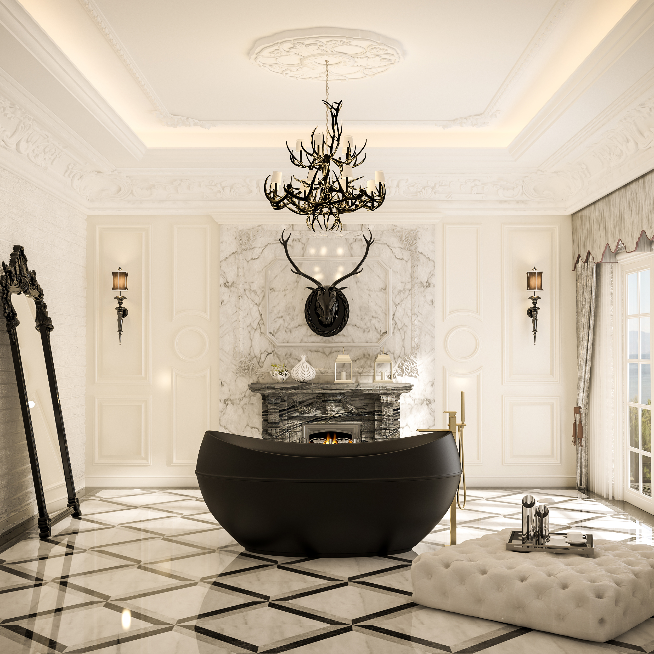 ADONISM BAIGNOIRE AUTOPORTANTE AVEC JETS HYDROMASSAGE (190X96X82CM) – NOIR MAT