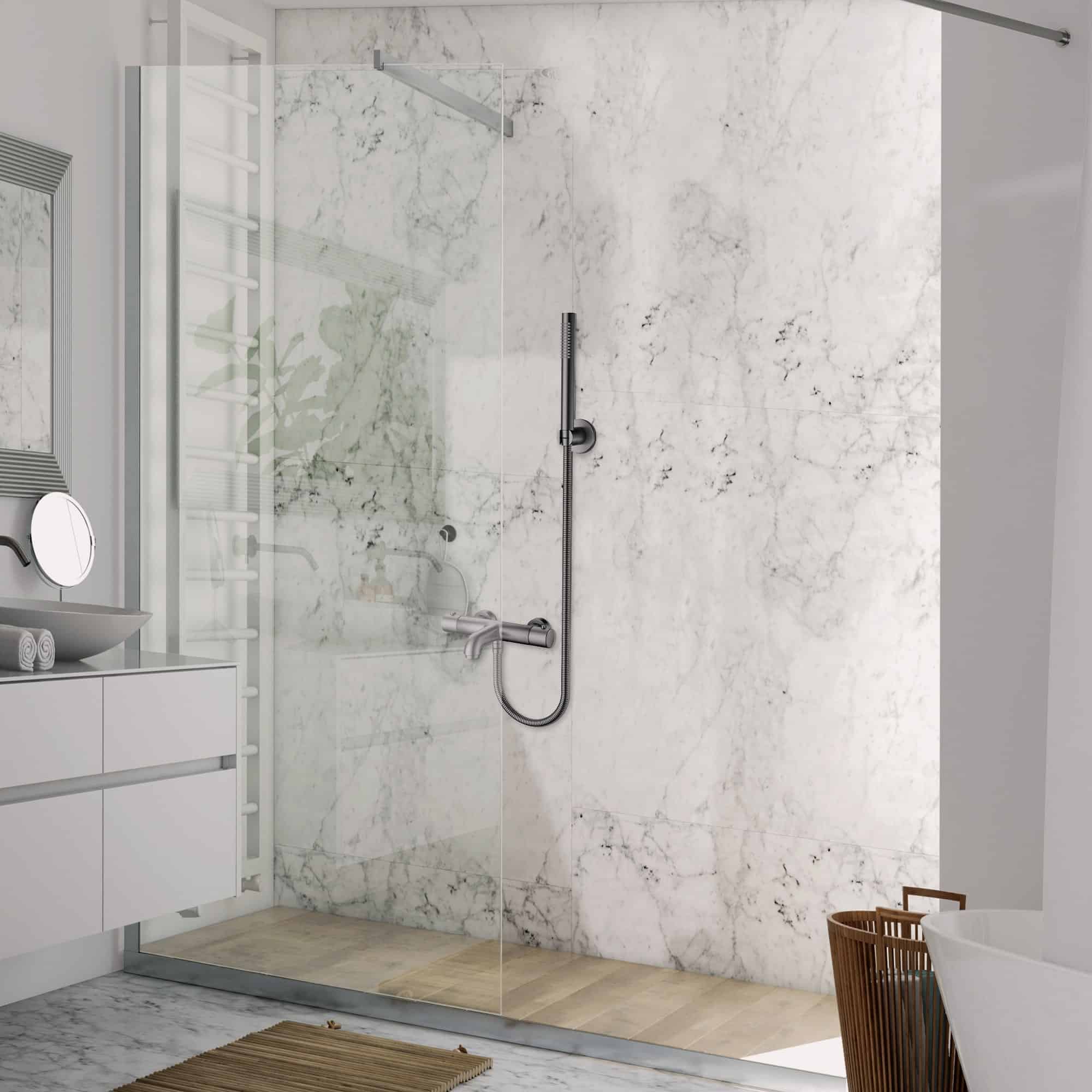 The quality materials, PVD treatment, brass finish and soft, silicone nozzles on the hand shower prevent limescale build-up and corrosion, so your product will last a lifetime. The shower faucet features a temperature limiter at 38°C and the reliable thermostat ensures a comfortable, constant water temperature.