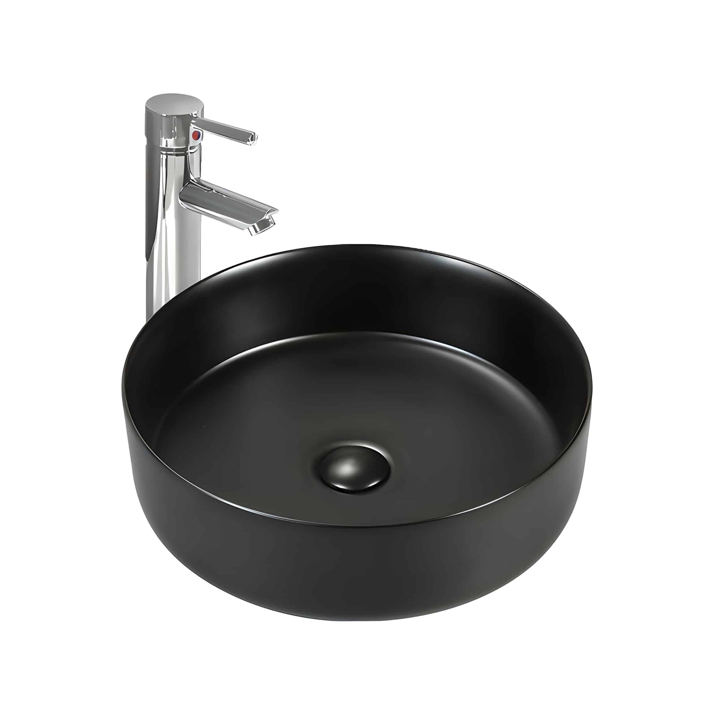 The Aloni Fira washbasin is an elegant countertop model, made from high-quality ceramic with a matte black finish. Thanks to its minimalist design – without tap hole and without overflow – this basin offers maximum flexibility in tap selection and ensures a clean, seamless look. It comes with a practical click waste for easy use and maintenance.
