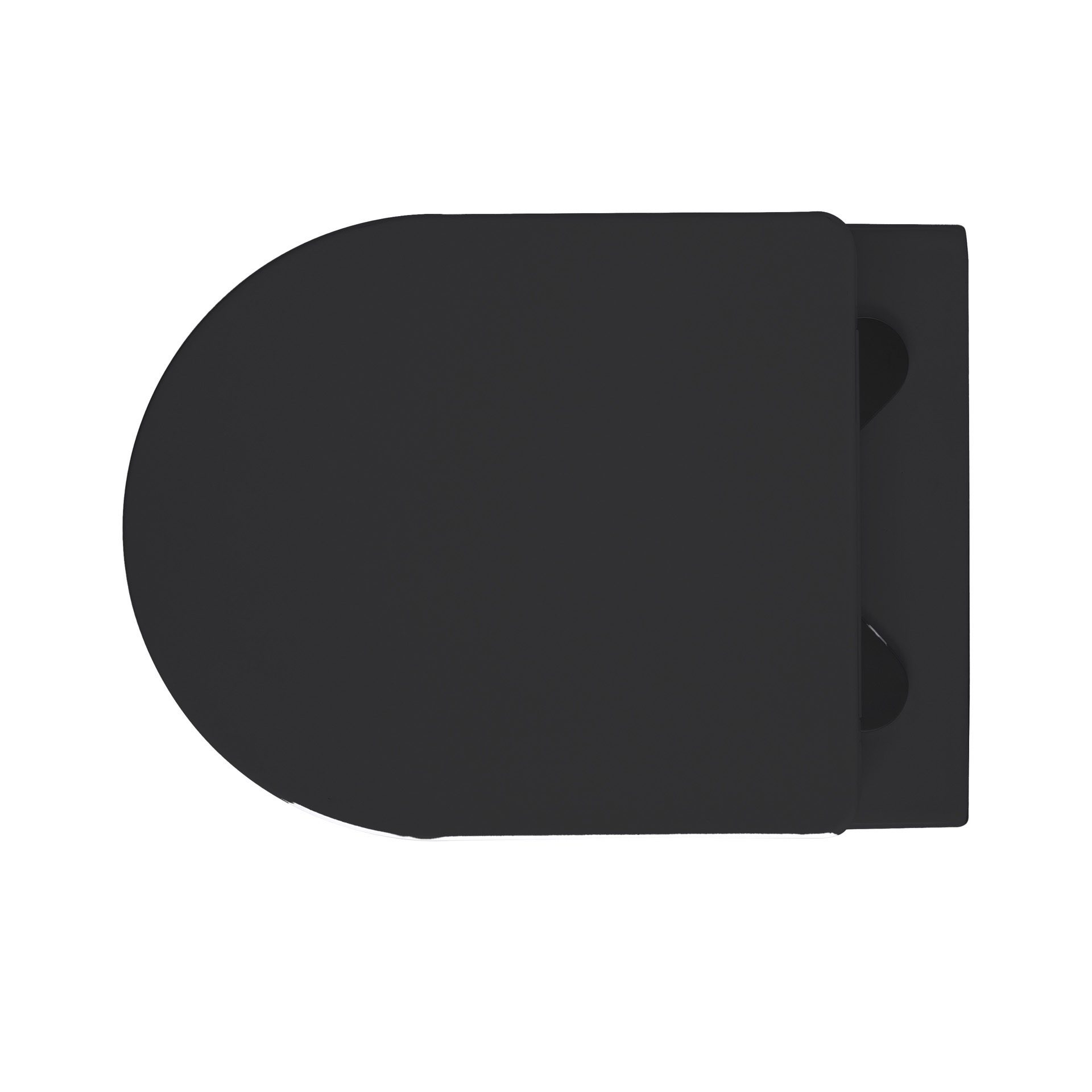 ALONI PRO WC SUSPENDU – SANS BRIDE – AVEC ABATTANT – DUROPLAST – SOFT CLOSE – QUICK RELEASE – COMPACT 49 CM – 36X32X49 CM – NOIR MAT