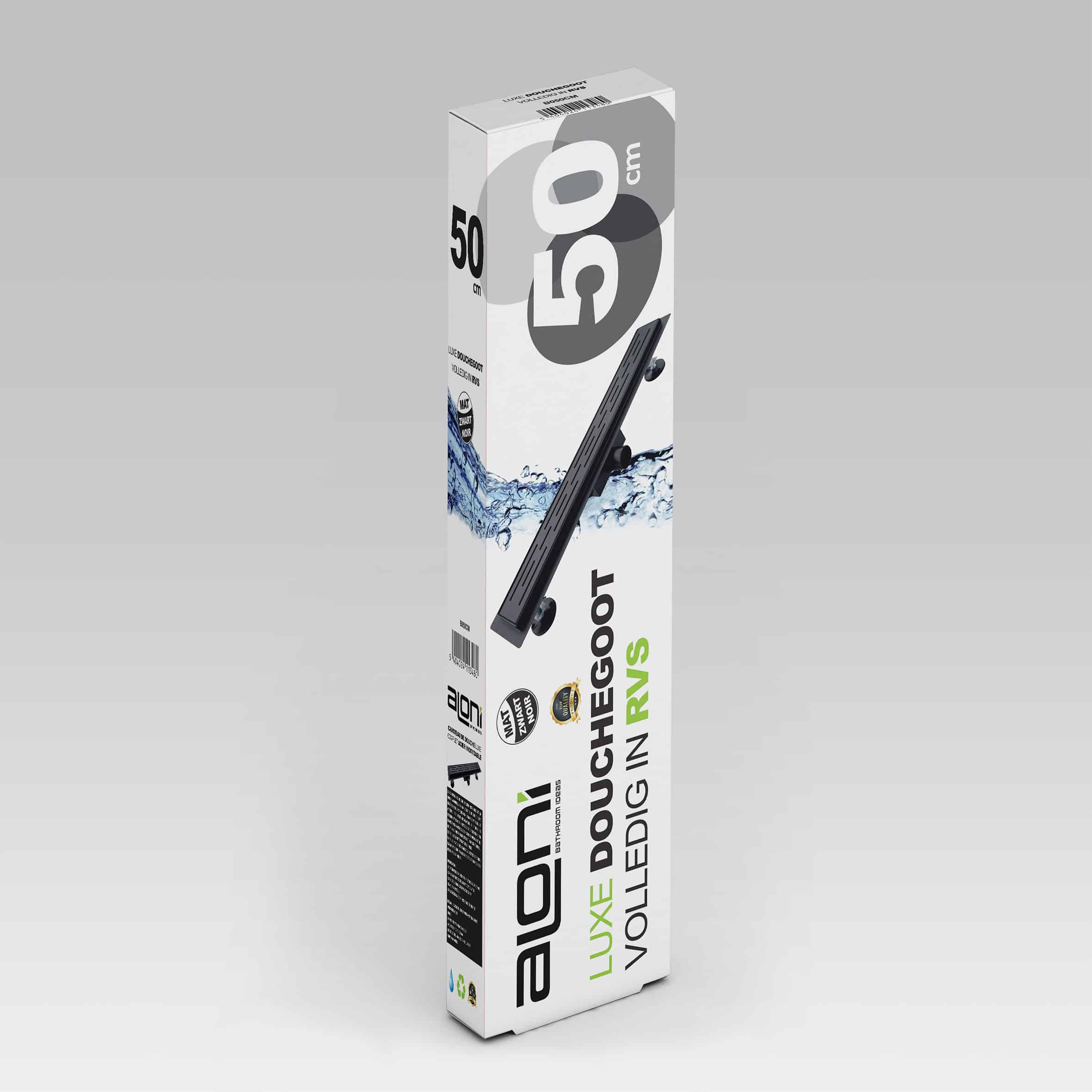 CANIVEAU DE DOUCHE EN INOX COMPLET (50CM) – NOIR