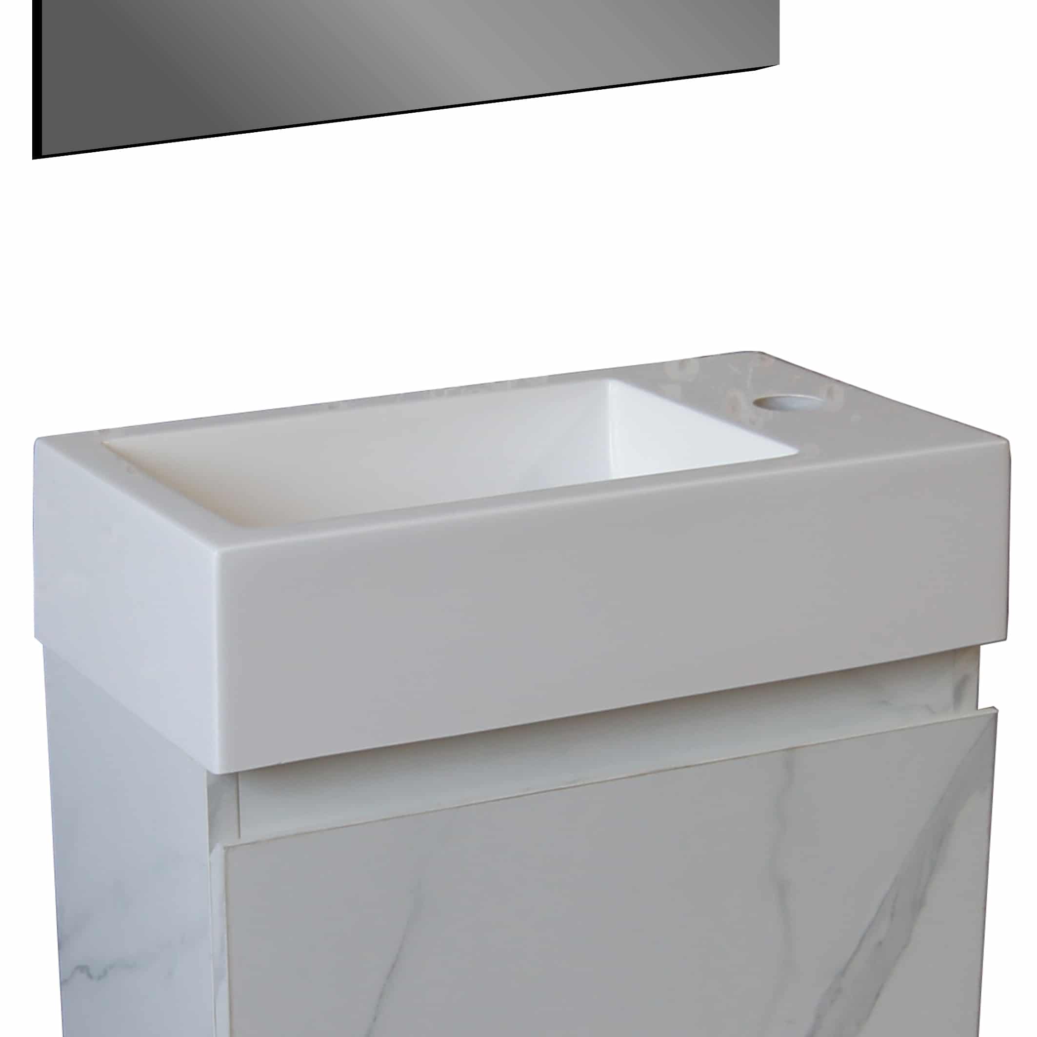ALONI LAVE-MAINS – SANS TROP-PLEIN – TROU ROBINET À GAUCHE OU À DROITE – MARBRE COMPOSITE – 40X10,5X22,5CM – BLANC BRILLANT