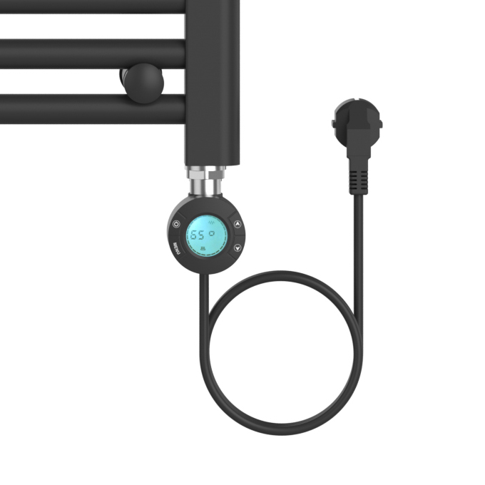 BELRAD ELEKTRISCHE HANDDOEKDROGER – MET DIGITALE, PROGRAMEERBARE THERMOSTAAT – AANSLUITING RECHTS – 700W – 1200X500 MM – MAT ZWART