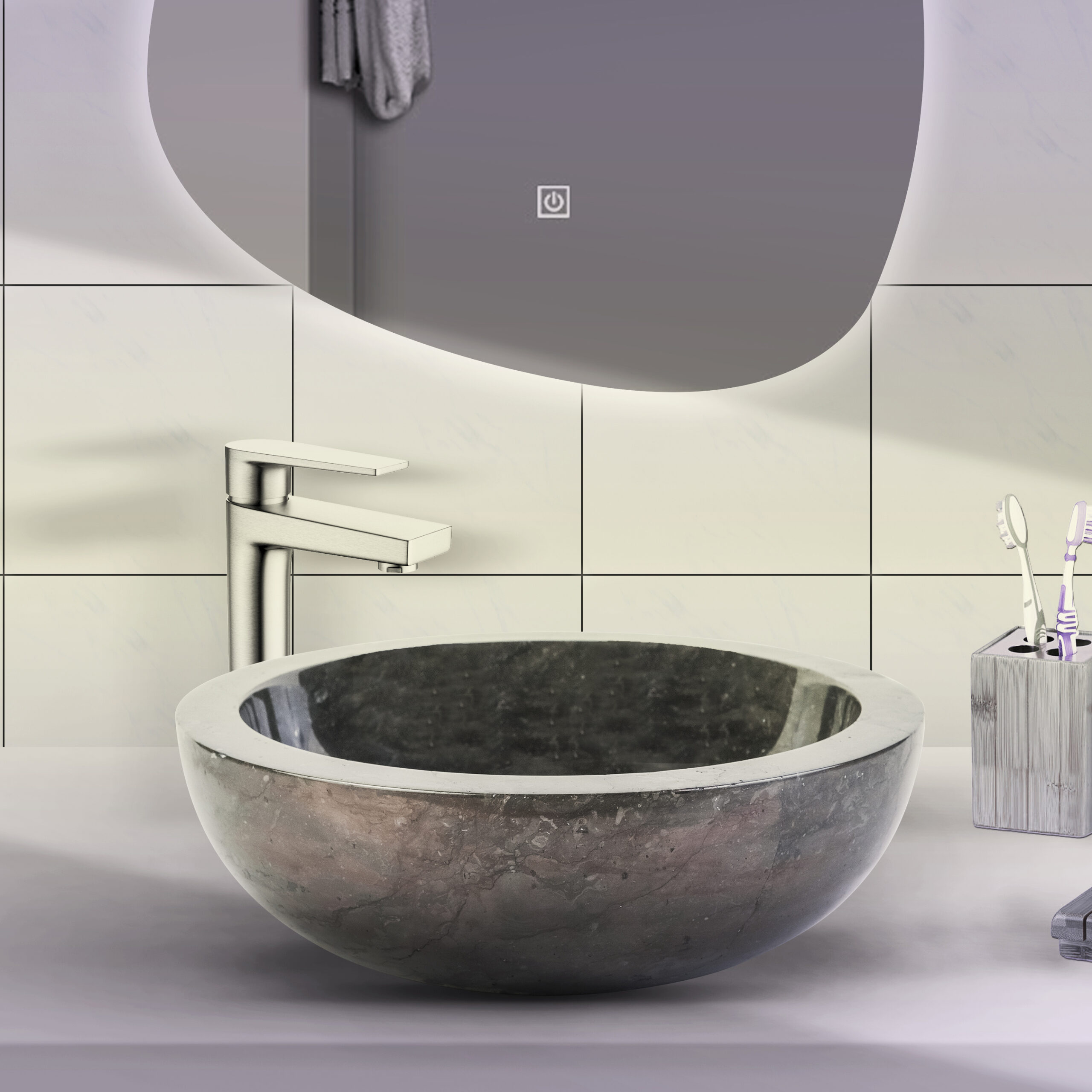 Important!Our natural stone basins are handcrafted, meaning that variations in dimensions, texture, color, and pattern may occur. These unique characteristics are inherent to the material and give each basin an exclusive and authentic appearance. Every piece is one of a kind and highlights the natural beauty of the stone.