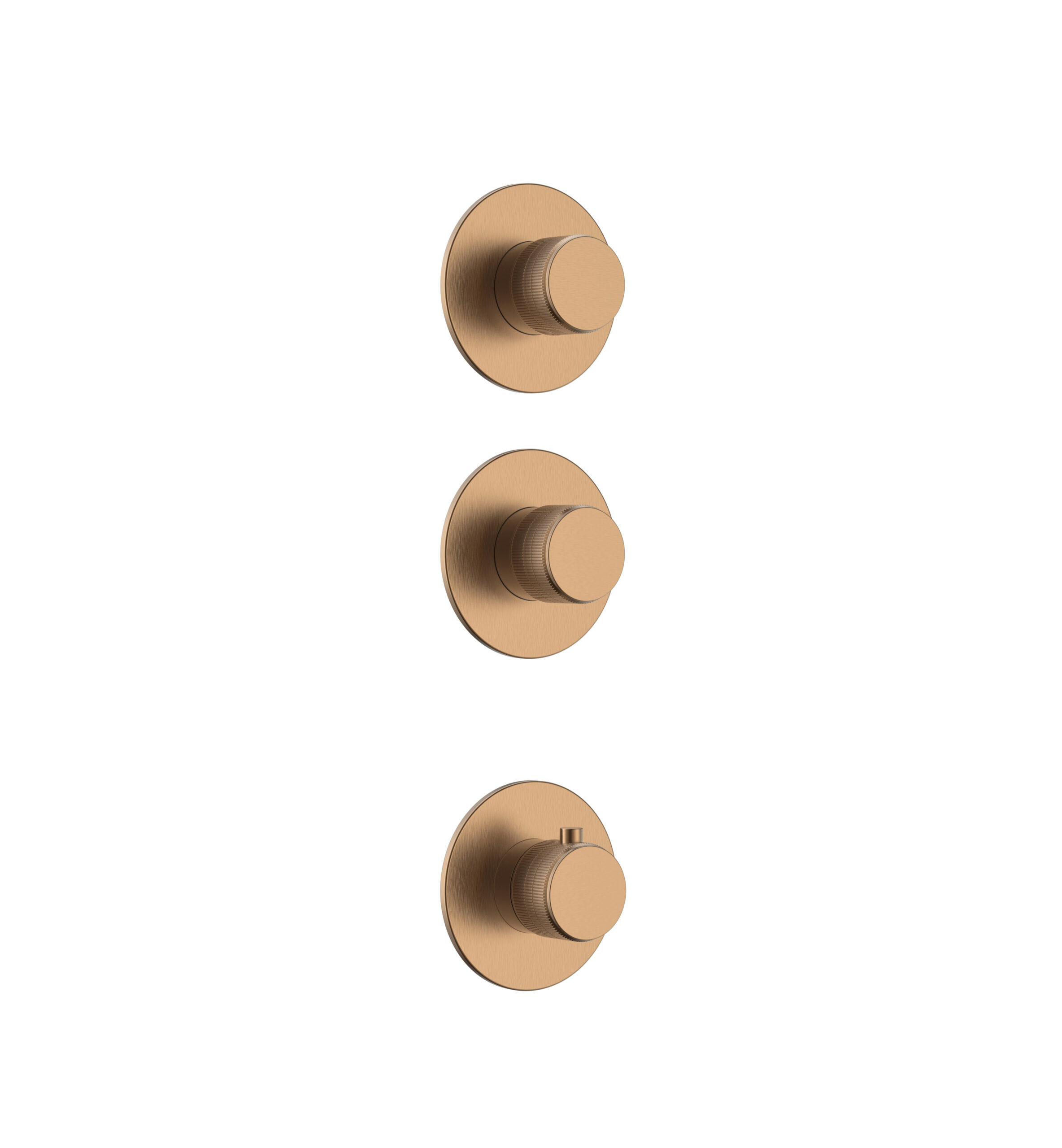 STRIA TRIM SET FOR SHOWER MIXER – 2-WAY WITH 2 STOP VALVES – THERMOSTATIC – BUILT-IN – ROUND – REFINED RIBBED HANDLES – BROWN BRONZE (PVD)