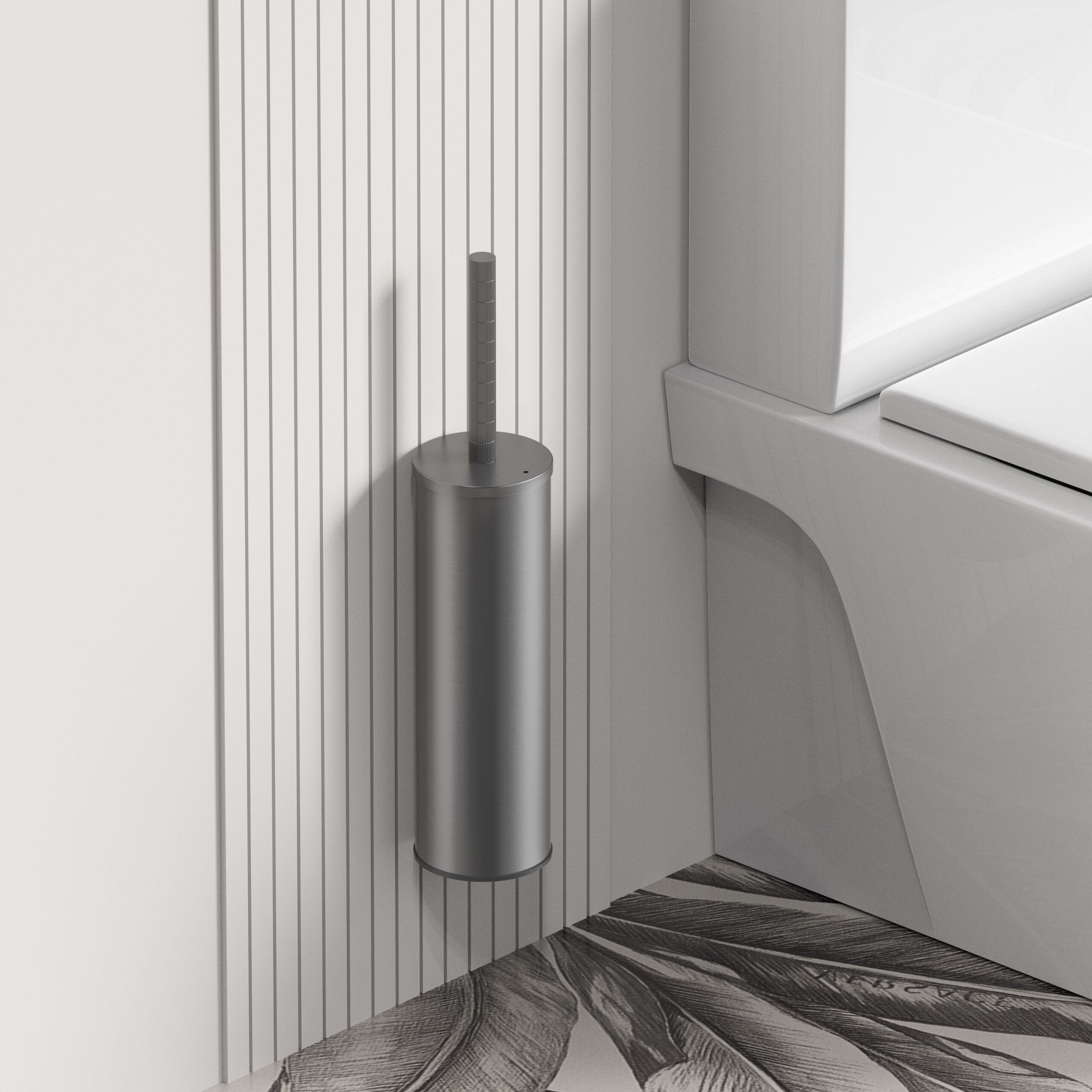 The Stria toilet brush with holder in gunmetal with a PVD coating