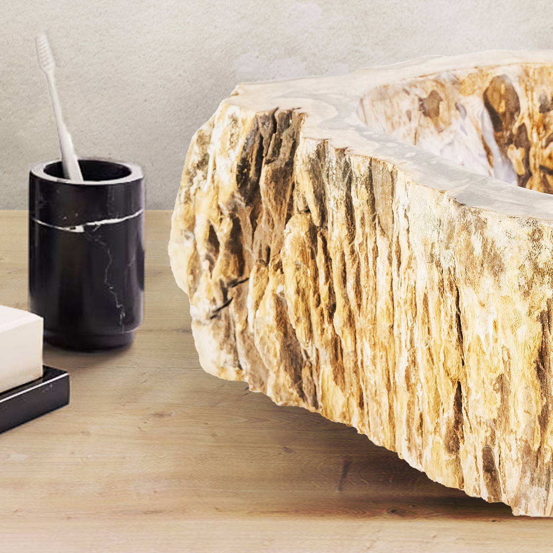 Important!Our natural stone basins are handcrafted, meaning that variations in dimensions, texture, color, and pattern may occur. These unique characteristics are inherent to the material and give each basin an exclusive and authentic appearance. Every piece is one of a kind and highlights the natural beauty of the stone.