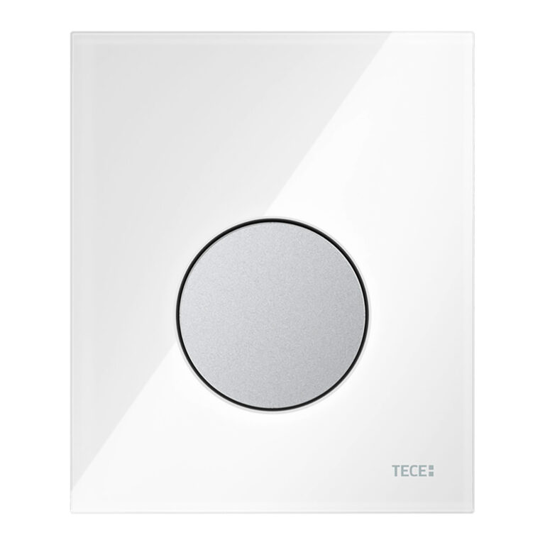 Teceloop Urinoirbedieningsplaat Van Glas Incl. Cartouche – Glas Glanzend Wit – Toets Mat Chroom