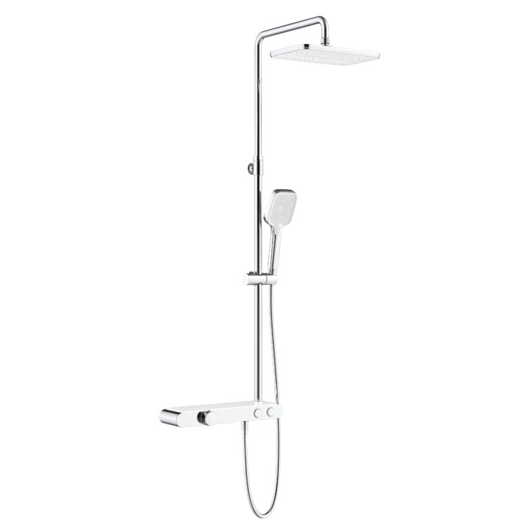 ALONI ROBINET DE DOUCHE THERMOSTATIQUE AVEC TABLETTE CHROME BLANC